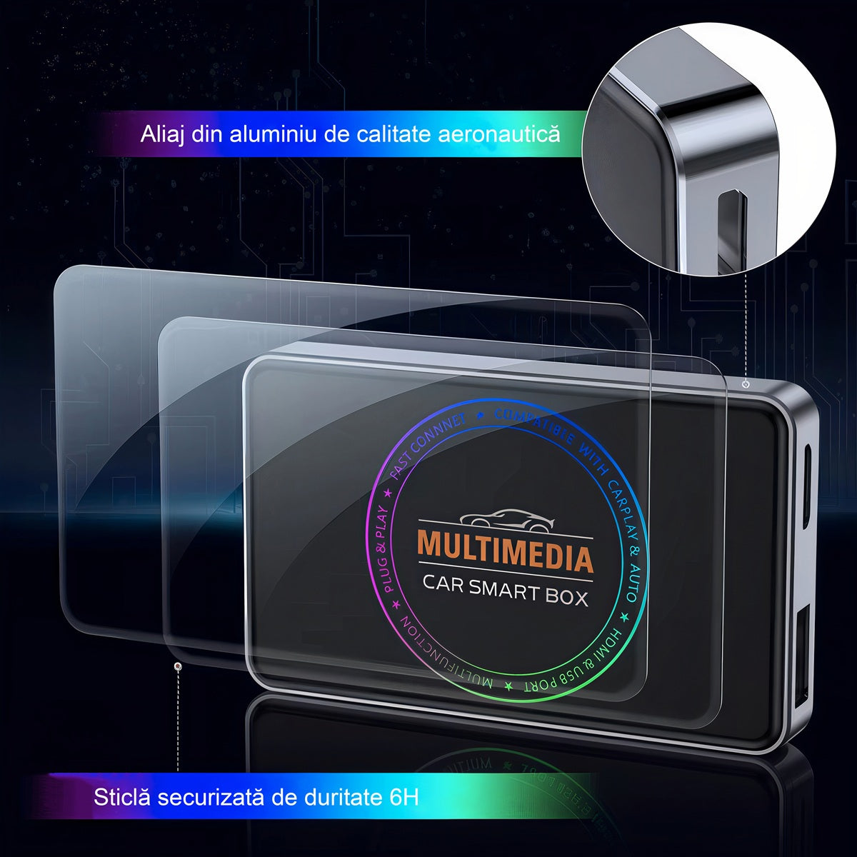 Adaptor Auto Wireless 4 in 1 Apple Carplay si Android Auto ENZIRO®, cu Netflix, YouTube, Google Store, HDMI 4K, 32GB, sistem ANDROID 12, Negru | Gri